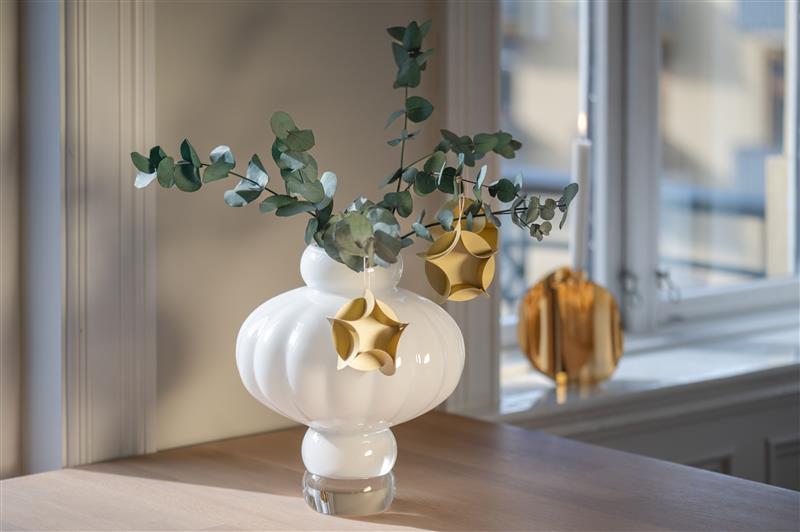 Stjernen måler 9,5 cm ferdig montert. Den passer perfekt på juletreet eller som pynt i adventstiden.