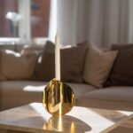 Kreftforeningens lysestake er håndlaget, i messing, og hvert produkt er derfor unikt. Den gjør seg godt alene og kan fint kombineres med andre produkter i serien. For eksempel med den lille stjernen på et dekket julebord.