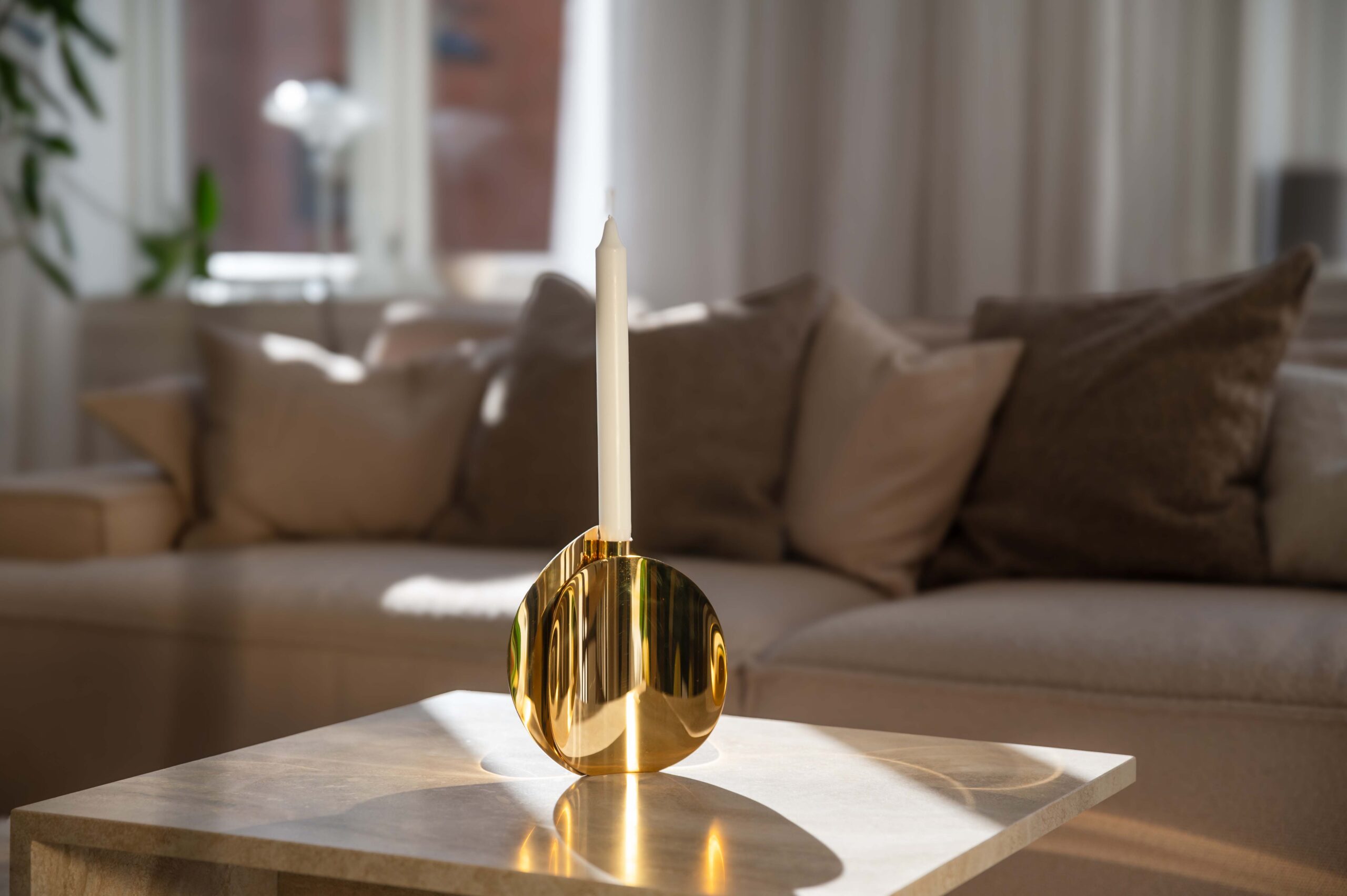 Kreftforeningens lysestake er håndlaget, i messing, og hvert produkt er derfor unikt. Den gjør seg godt alene og kan fint kombineres med andre produkter i serien. For eksempel med den lille stjernen på et dekket julebord.